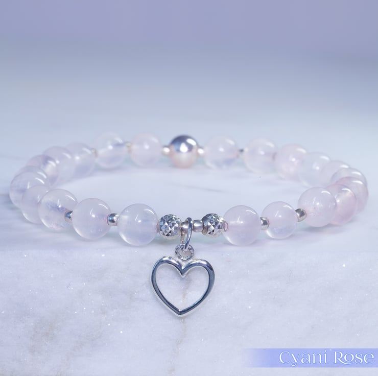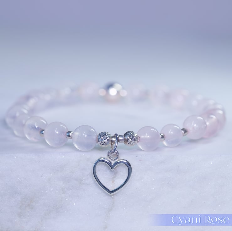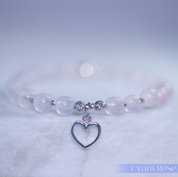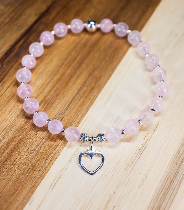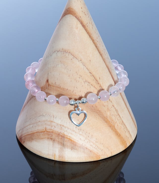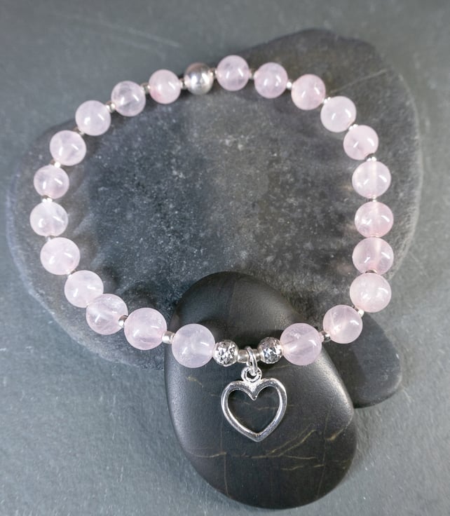 Rose quartz is the gem of love, so what better than a heart charm to go with it.