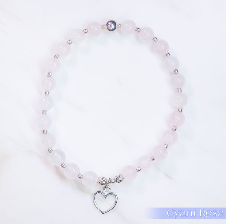 Rose quartz is the gem of love, so what better than a heart charm to go with it.