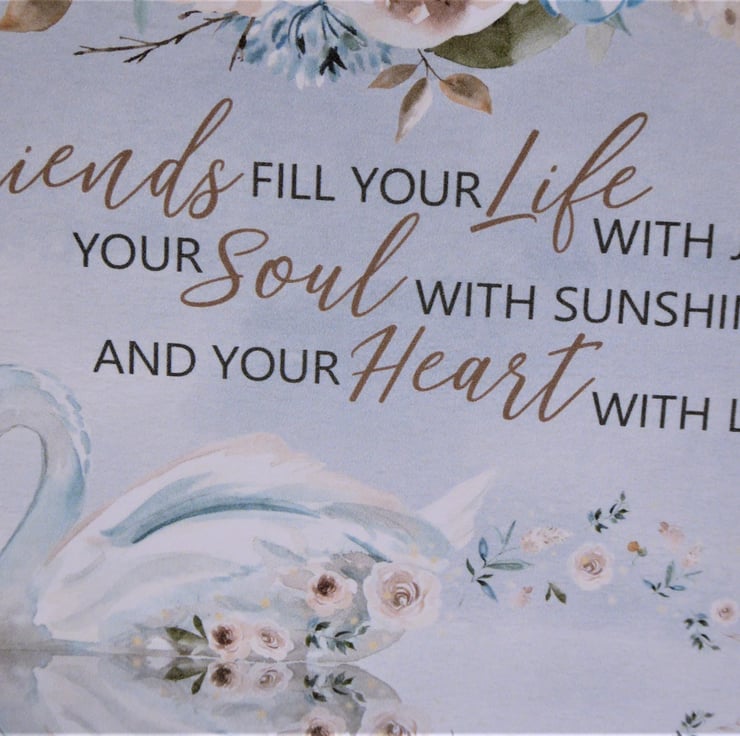 WORDING ON FRONT: "Friends fill your life with joy, your soul with sunshine, and your heart with love"