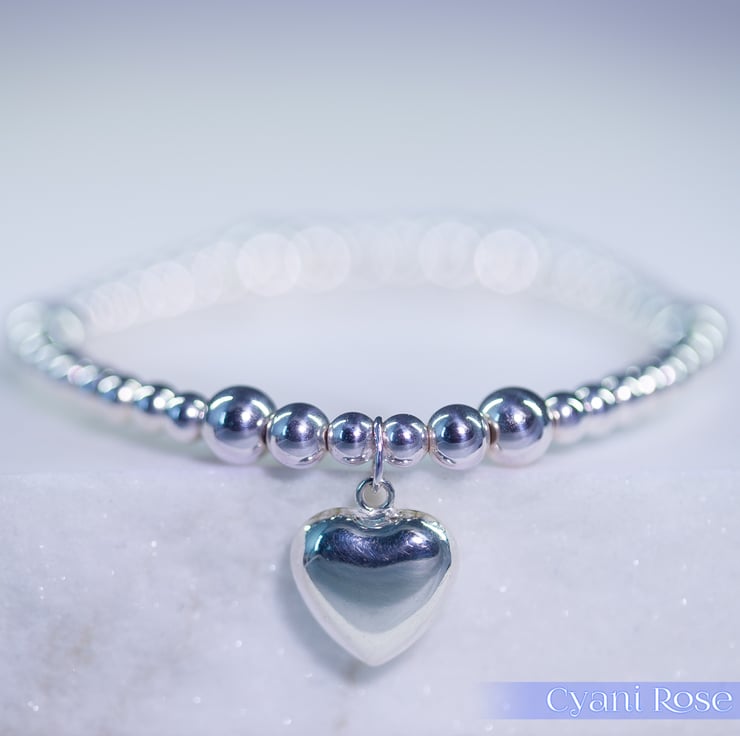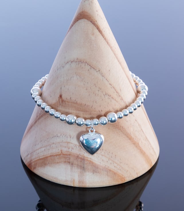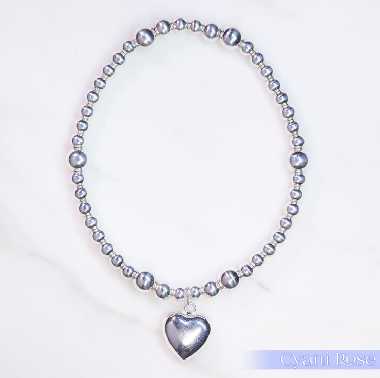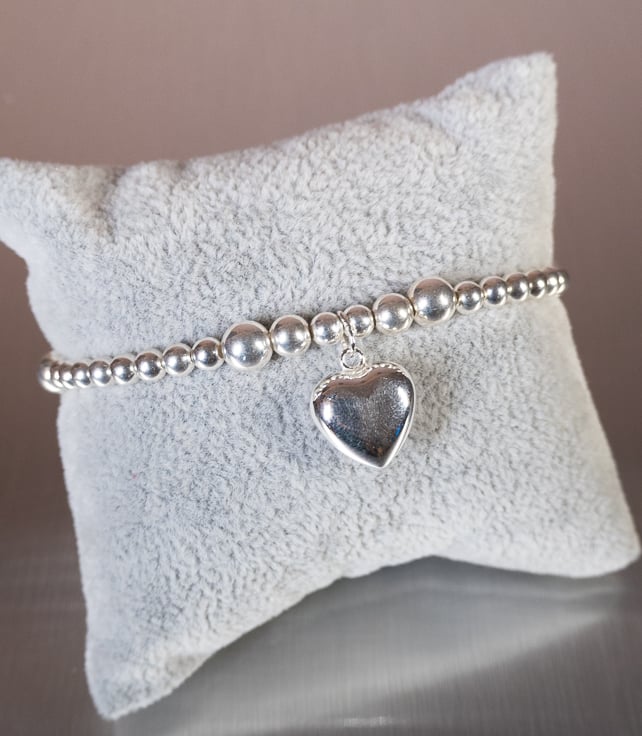Bracelet sterling silver heart charm stunning statement piece handmade