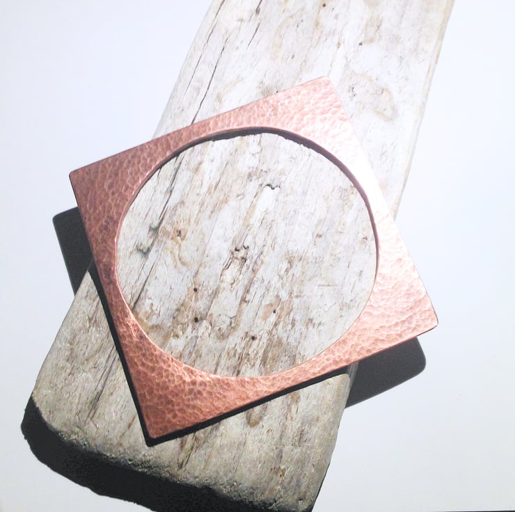 I have created this interesting bangle by hand sawing the shape from 2.5 mm copper sheet.