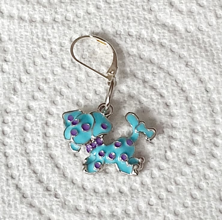 Enamel ready made charm affixed with a split ring to a lever clasp.