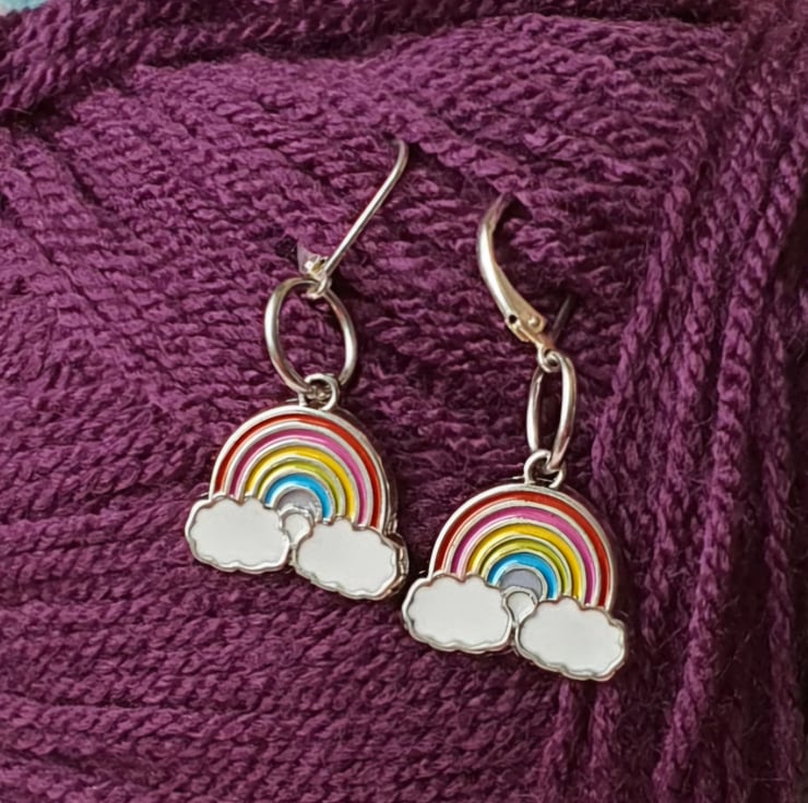 Enamel ready made charm affixed with a split ring to a lever clasp.