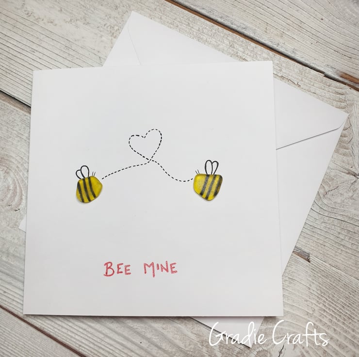 Handmade sea glass Valentine's day card made using seaglass I've beachcombed along the Anglesey coastline and hand painted.