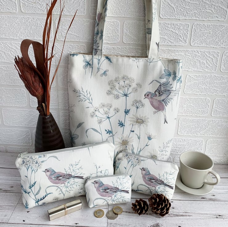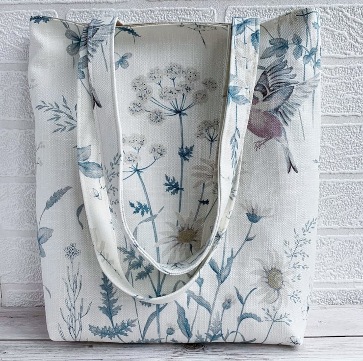 This tote bag is very versatile - perfect for use as a shopping bag but pretty enough to be used as a handbag. It can be easily folded and placed inside a handbag. With its delightful chaffinch and meadow pattern, it would make a lovely gift, particularly for anyone who loves birds and nature.