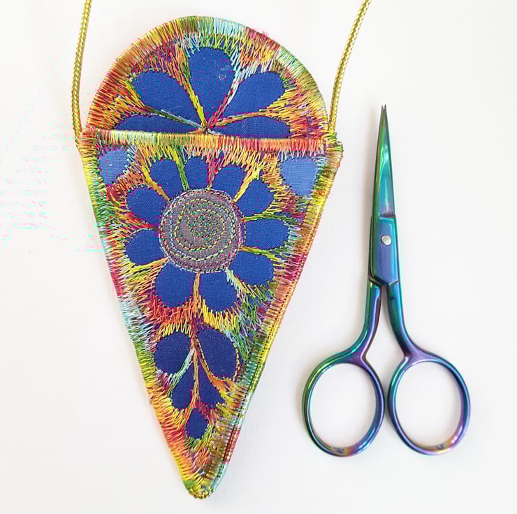 This is a handmade machine stitched fabric scissor holder necklace which includes a lovely pair of milward scissors.