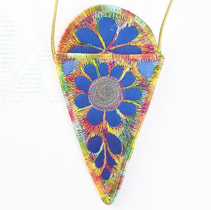 Made from layers of fabric including silk and cotton using the free machine embroidery style of sewing