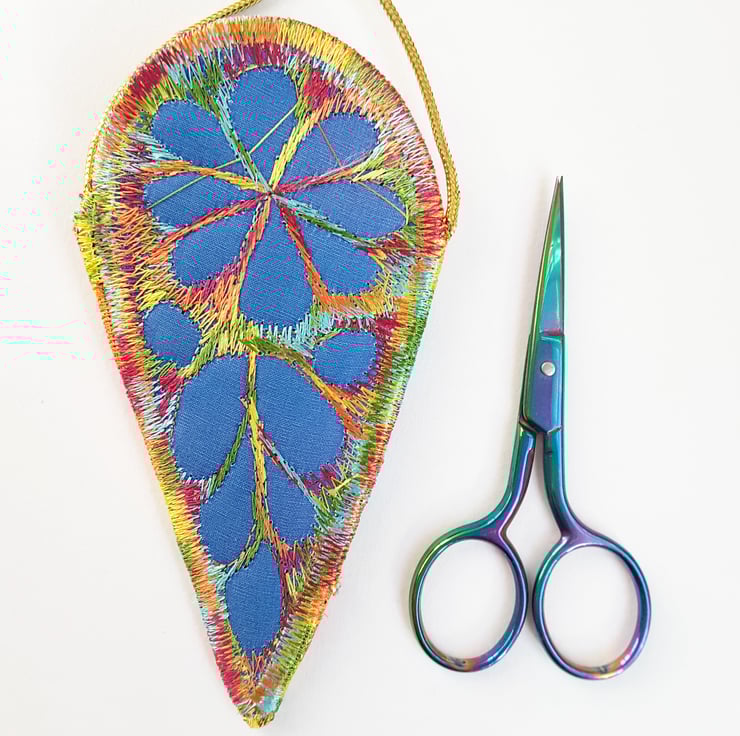 They come with s beautiful pair of Madeira embroidery scissors with oil slick colours made by maderia