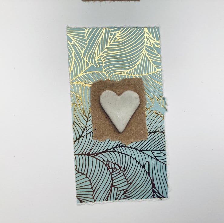 The gift card is perfect to give as a card and gift rolled into one. I have attached a one off ceramic loveheart glazed in pure white stoneware glaze. The piece of pottery and papers can be framed once it has served its purpose as a card.