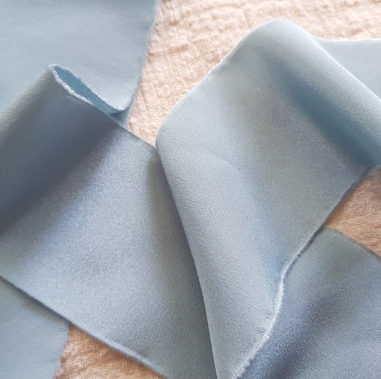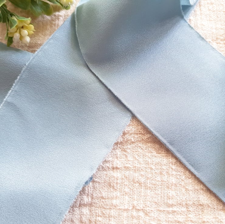 Duck egg blue 100% silk crepe de chine ribbon with raw edge