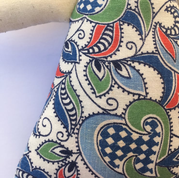Her dress is made from original 1940’s vintage fabric, which was an apron in its former life.