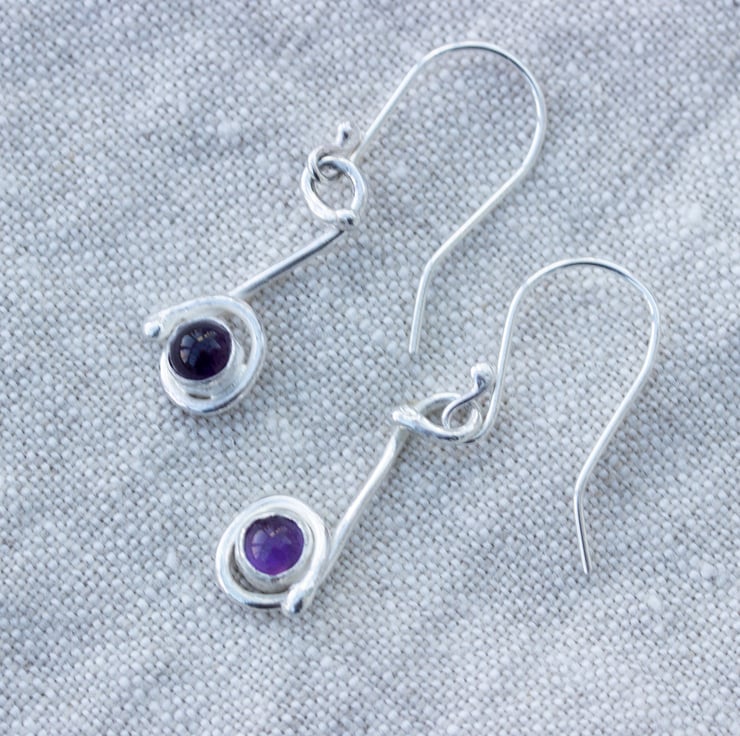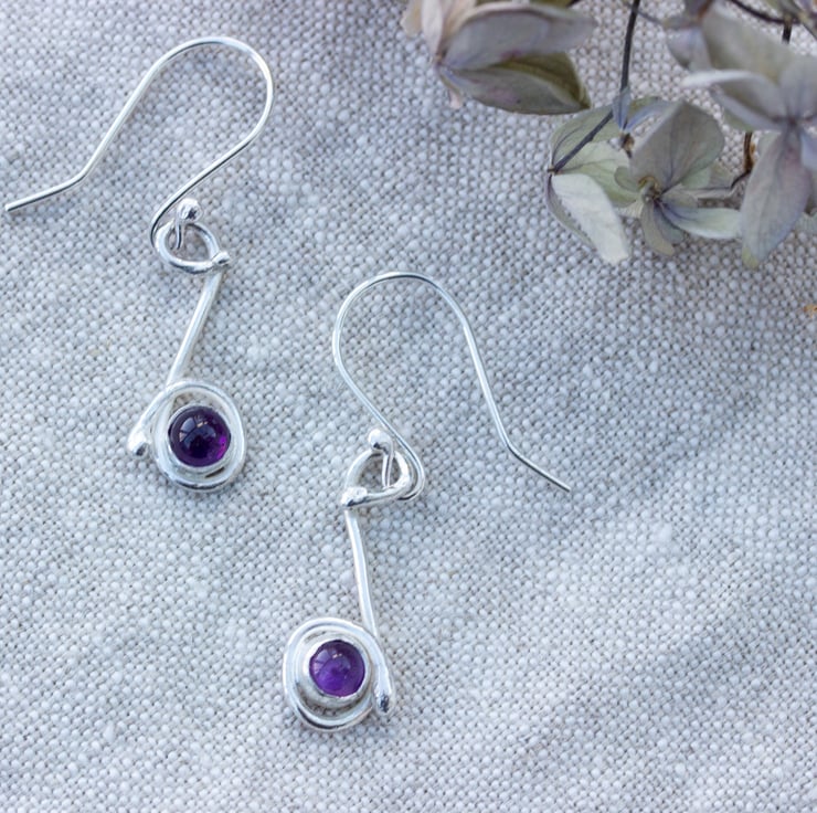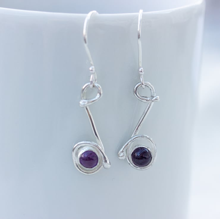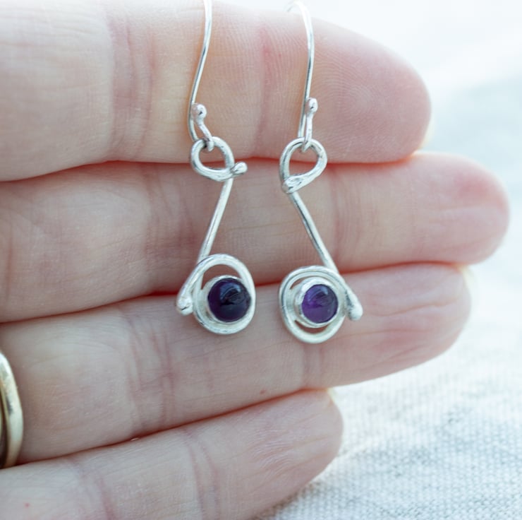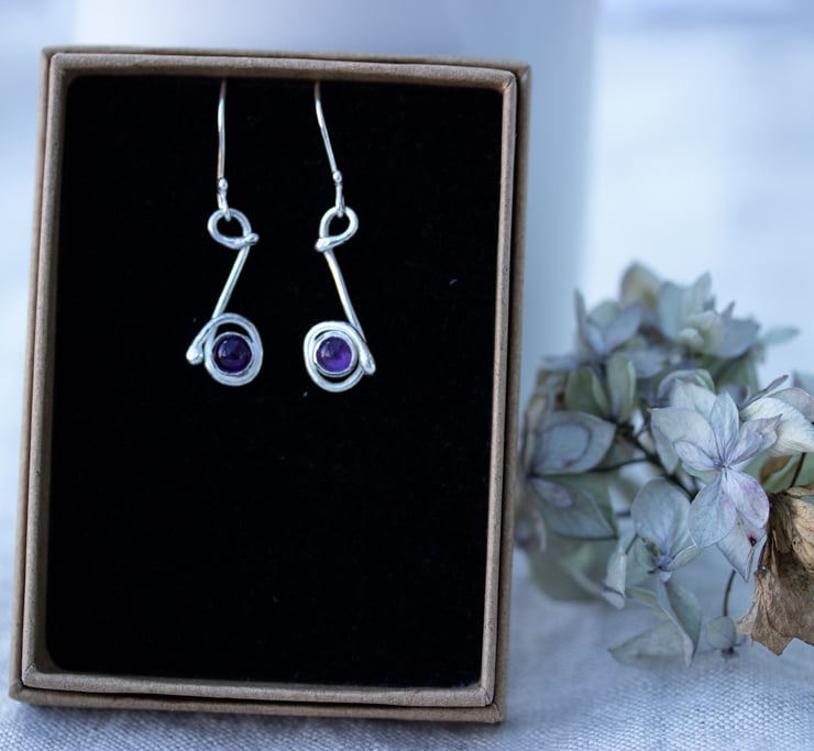Handmade by me using recycled Sterling silver wire and two beautiful amethyst stones, the birthstone for February.
