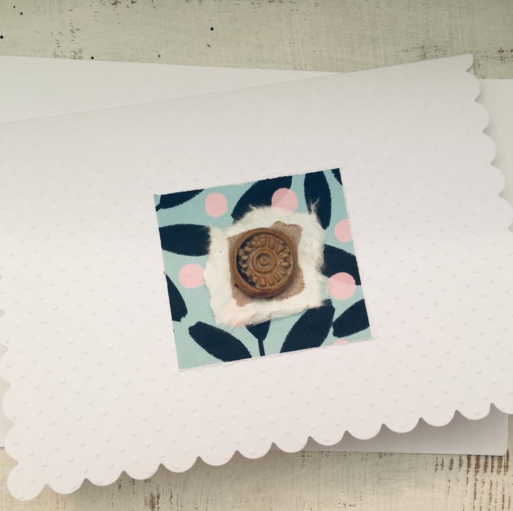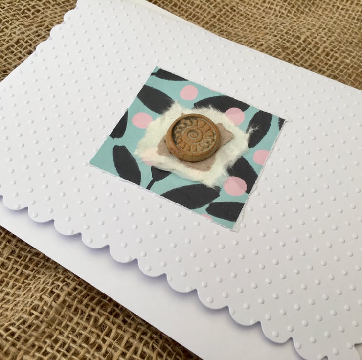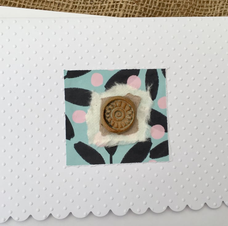 A beautiful one off Blank greetings card made with hand made papers and and a hand made Ceramic design gift. This can be framed and made into a keepsake. The card is left blank so you can personalise it with your very own message. It can be sent as a Birthday card, Valentine’s Day card, Christmas card, anniversary card, Mother’s Day card, Father’s Day card, new home card, sympathy card, or just to say Thank you to that someone special.