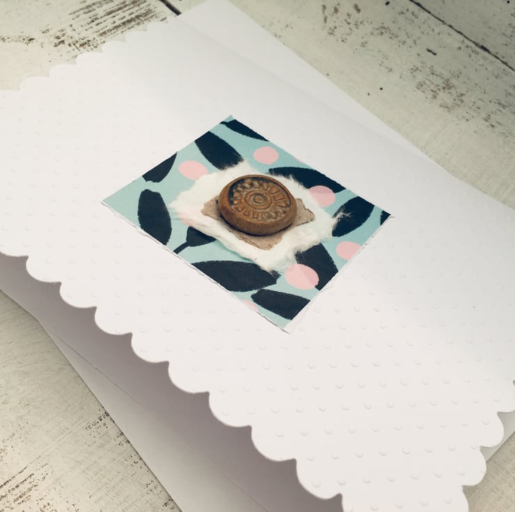 This gift card is perfect to give as a card and gift rolled into one. I have attached a one-off ceramic design to make this into a unique gift.