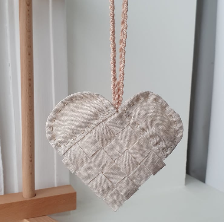 As Valentines Day is upon us and wishing to make something postable, I decided on a Danish inspired woven fabric heart.