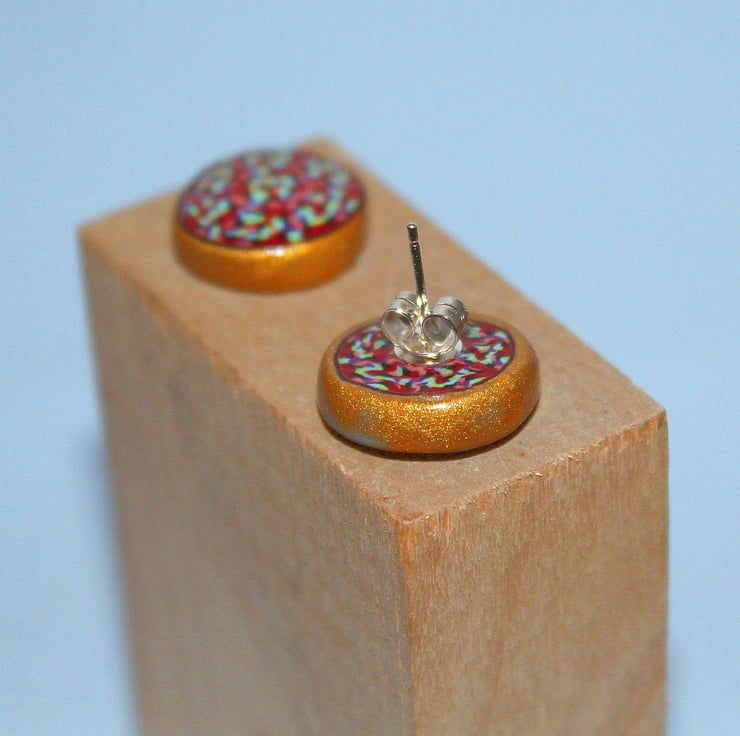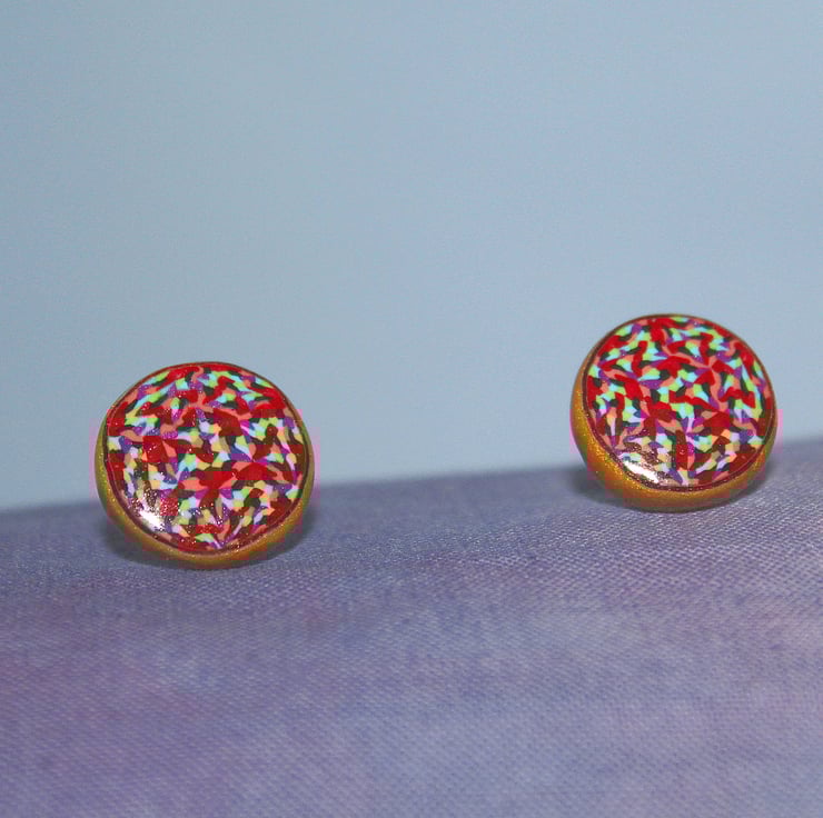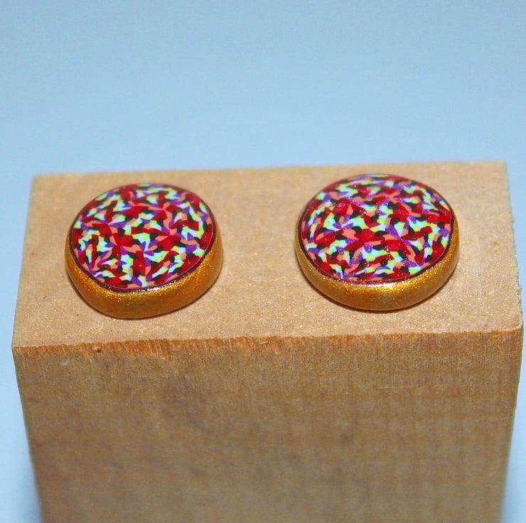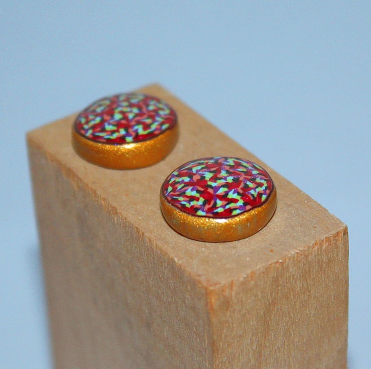 A fascinating and entrancing kaleidoscope pattern pair of ear studs. These are entirely thought up and made by myself, from polymer clay, and are very unique and original.