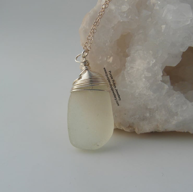 A beautiful chunky piece of white Cornish sea glass wire wrapped with silver wire.