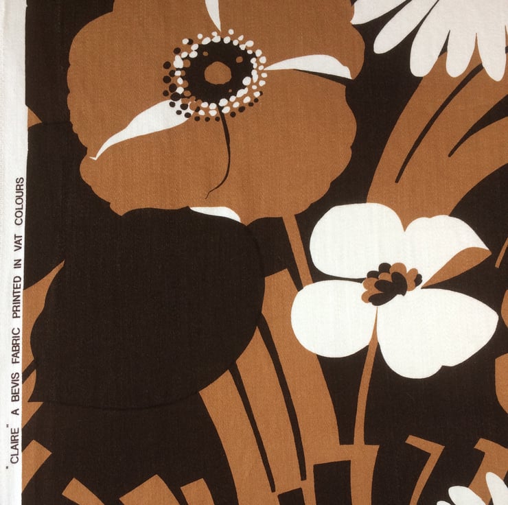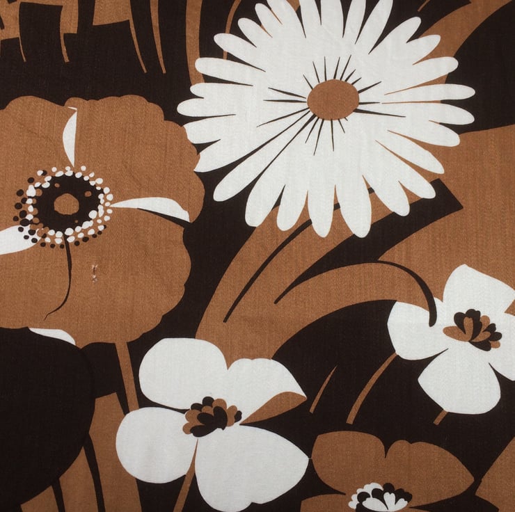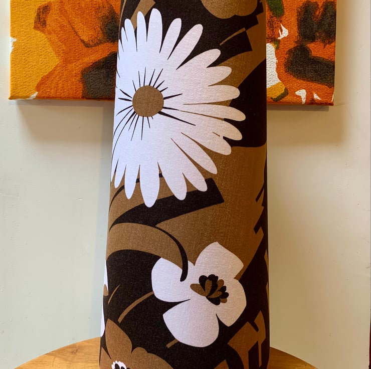 BIG Retro Flowers in Brown and White 60s 70s CLAIRE Vintage Fabric Lampshade - a BEVIS fabric