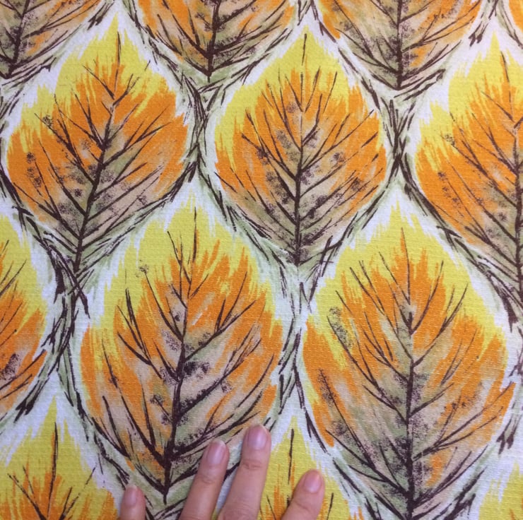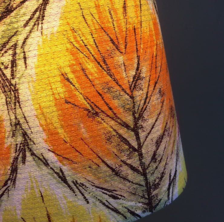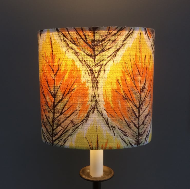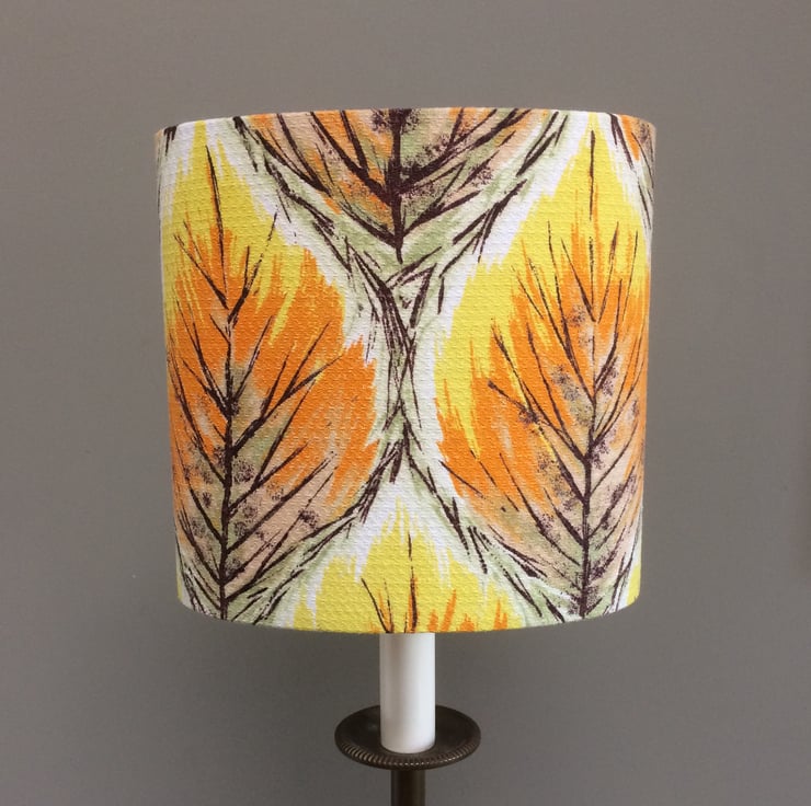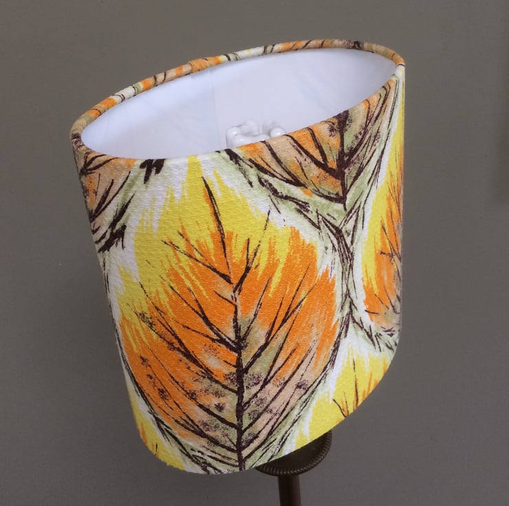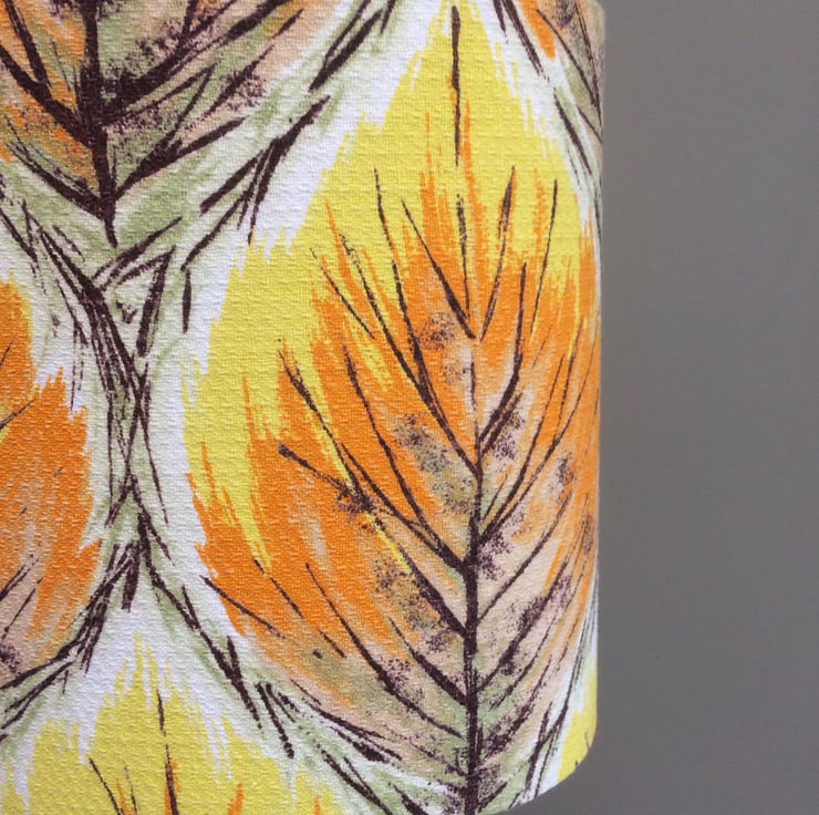 Flame Autumn Leaf Orange Yellow 50s 60s Barkcloth Vintage Fabric Lampshade