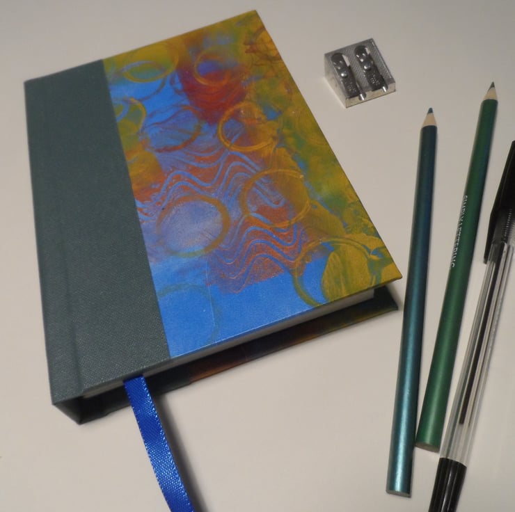 I love paper and I love making things so creative handmade books proved to be the ideal outlet for me. A few years ago I also discovered monoprint with the gel plate and another addiction was born. These gel prints are the perfect size for book covers and so I started making this series of books.