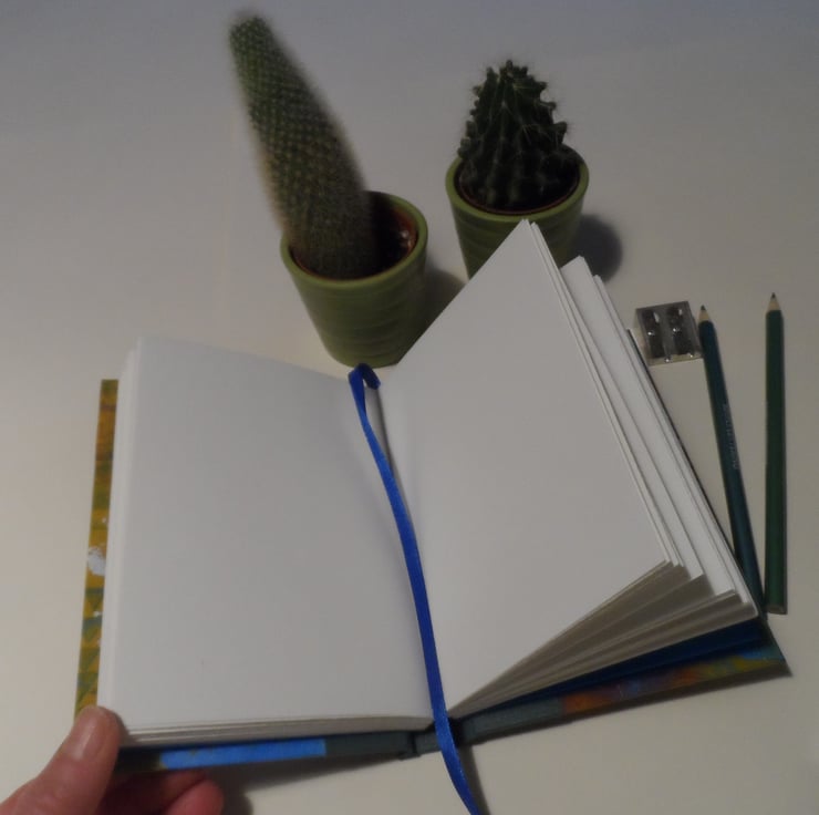 The inside pages of this book are white 140gsm cartridge and I have hand stitched the pages together using a French link stitch.
