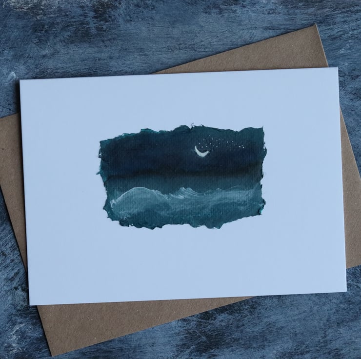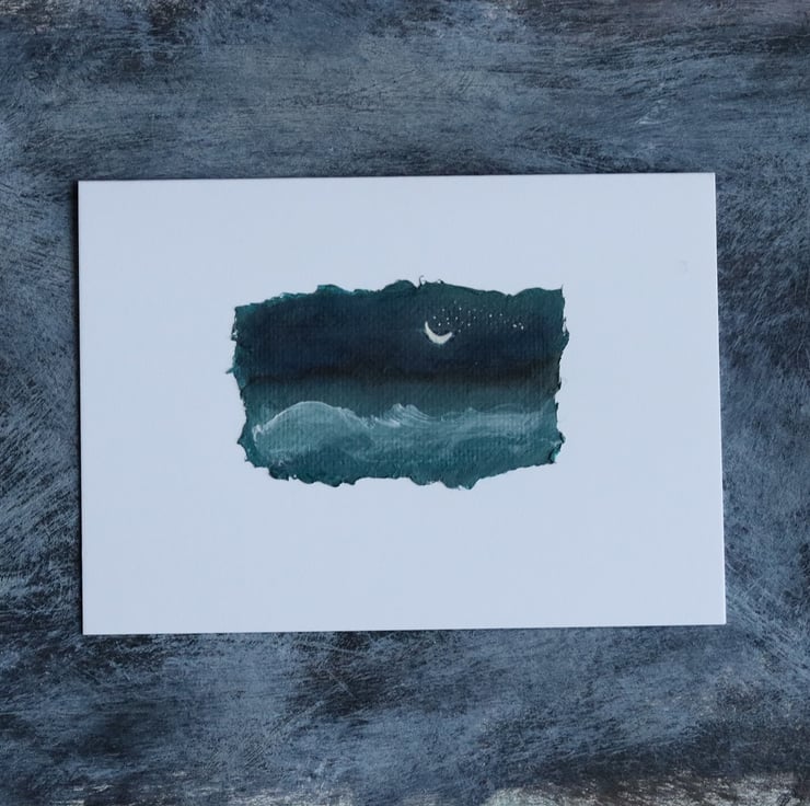 this little greetings card is made using a tiny painting, on recycled white card.