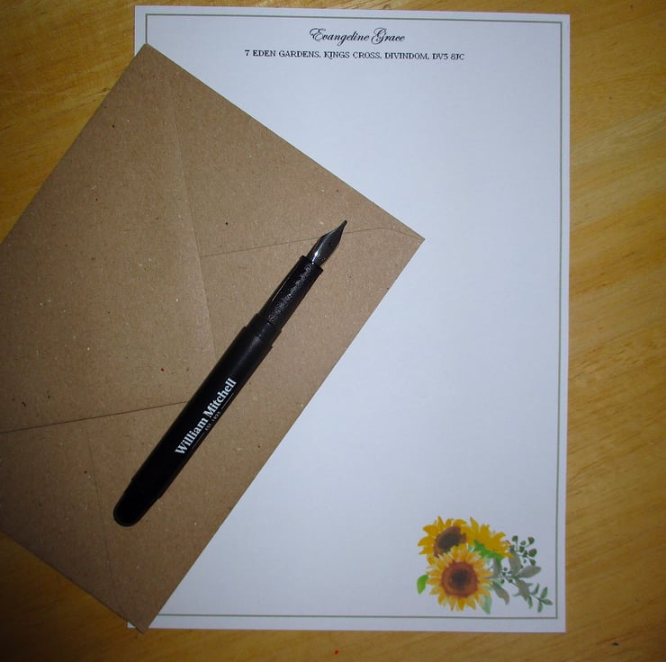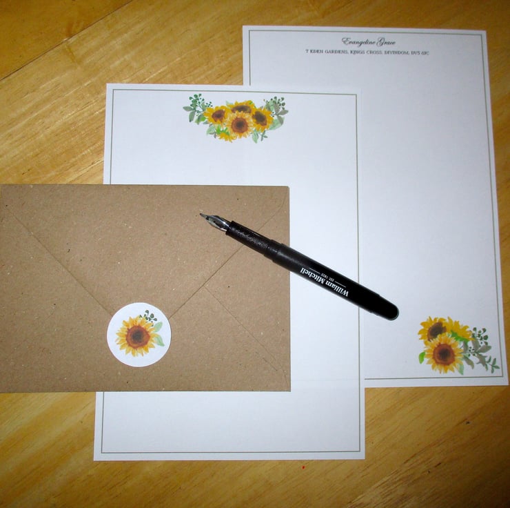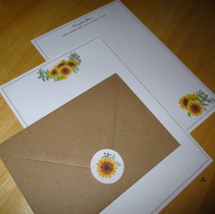 Watercolour sunflower design writing paper set of 20 pieces with optional personalisation and 2 design options.