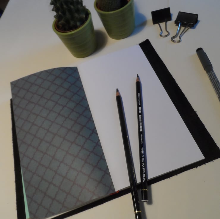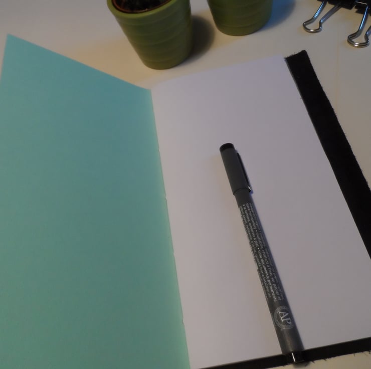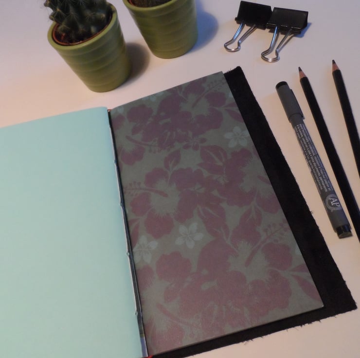 Who doesn’t love a refillable notebook? These handmade books are based on the Midori travellers notebook and once I’d seen them I wanted to make my own versions. These handmade books are made to a standard size so that the commercially available refills and accessories will fit. Please be aware there are different sizes of Midori notebooks, this is a standard size travellers notebook.