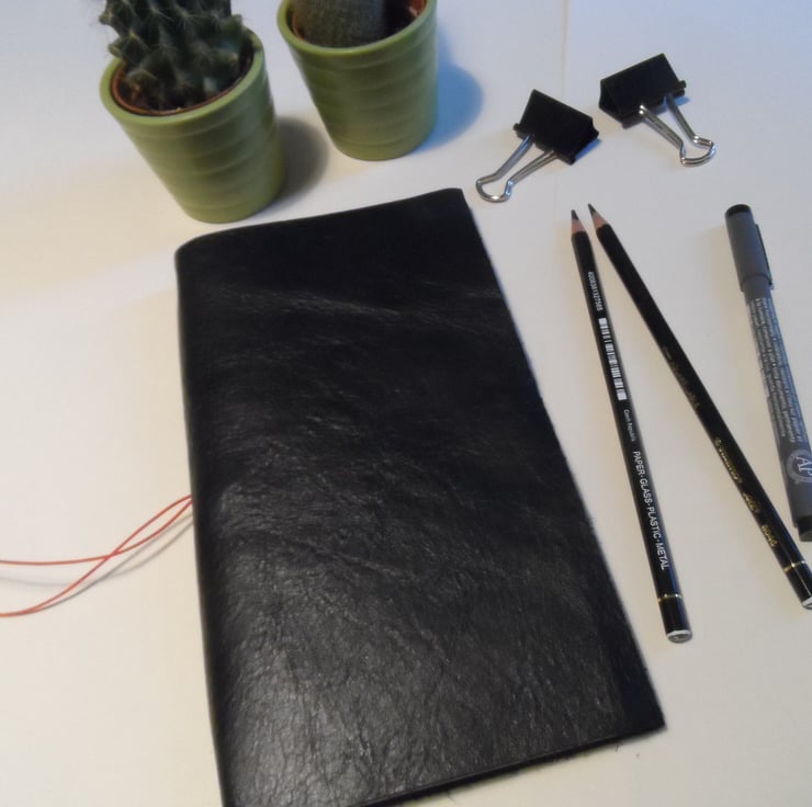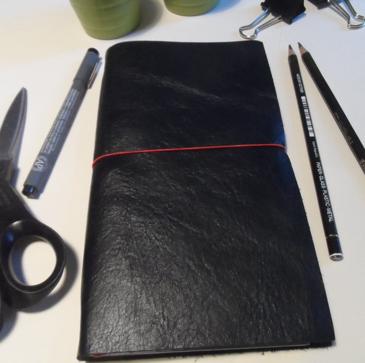 This is a handmade standard size Midori style travellers notebook with 3 removable booklets. The booklets are all held in with looped elastic and can be replaced in seconds.