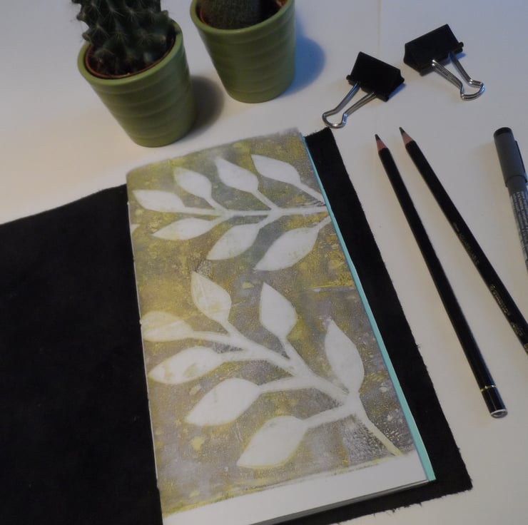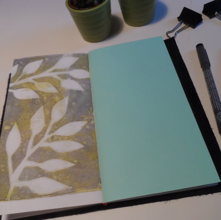 Booklet 1 cover is my own leaf design mono-printed paper, with dot grid paper inside pages.