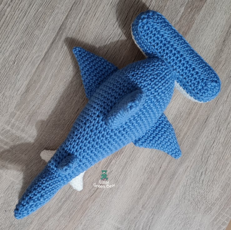 Hank is a very busy little shark who can swim as fast as 25 miles per hour. He’s an excellent hunter, which is why he’s so happy! He is just under 12 inches long (when made with the recommended materials).