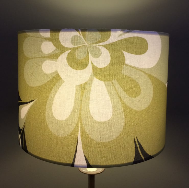 Bold RETRO Pale Green on Black BIG Groovy 60s 70s style Flower Lampshade
