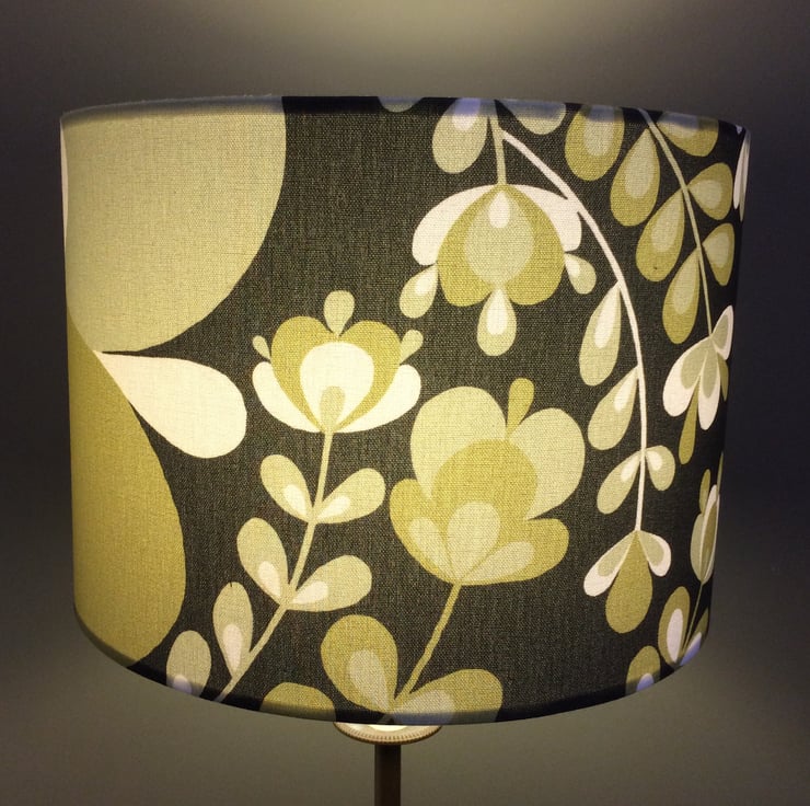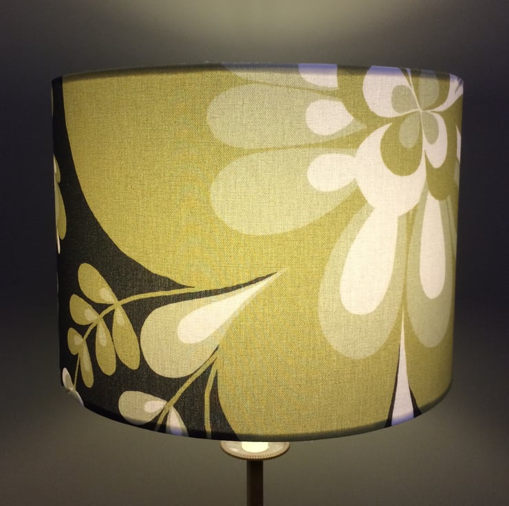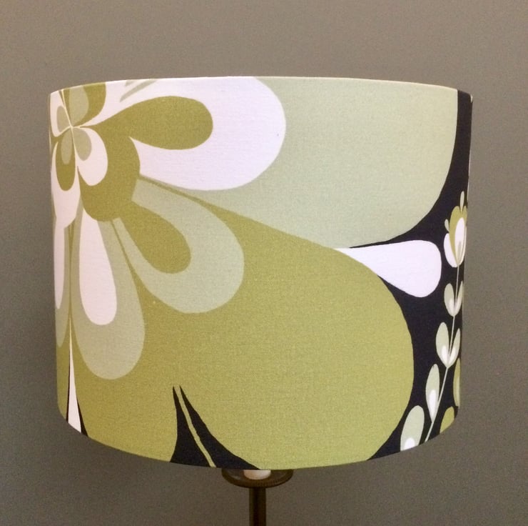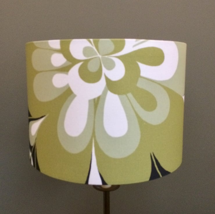 Bold RETRO Pale Green on Black BIG Groovy 60s 70s style Flower Lampshade