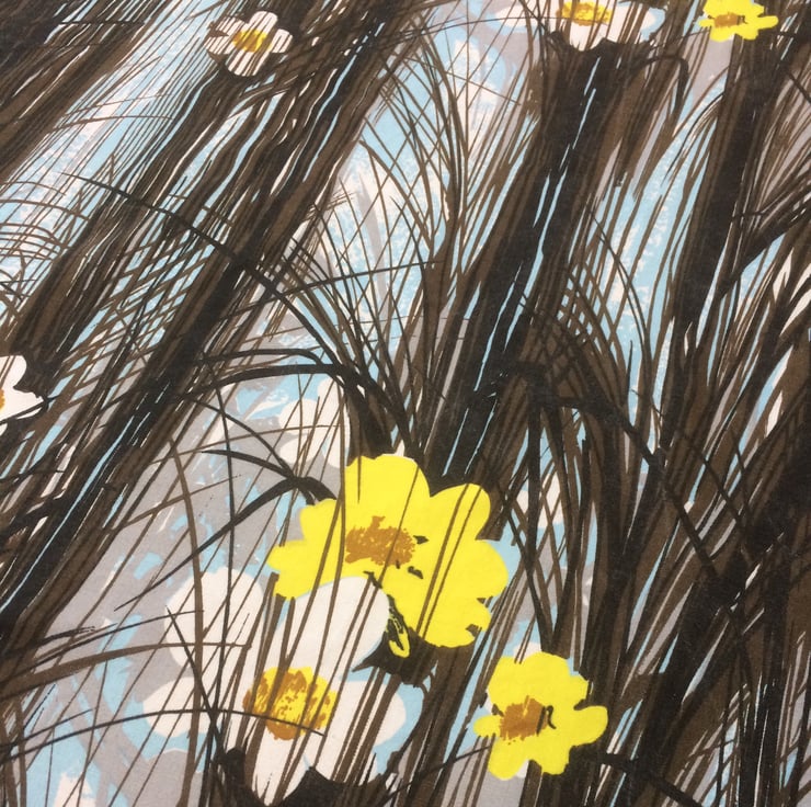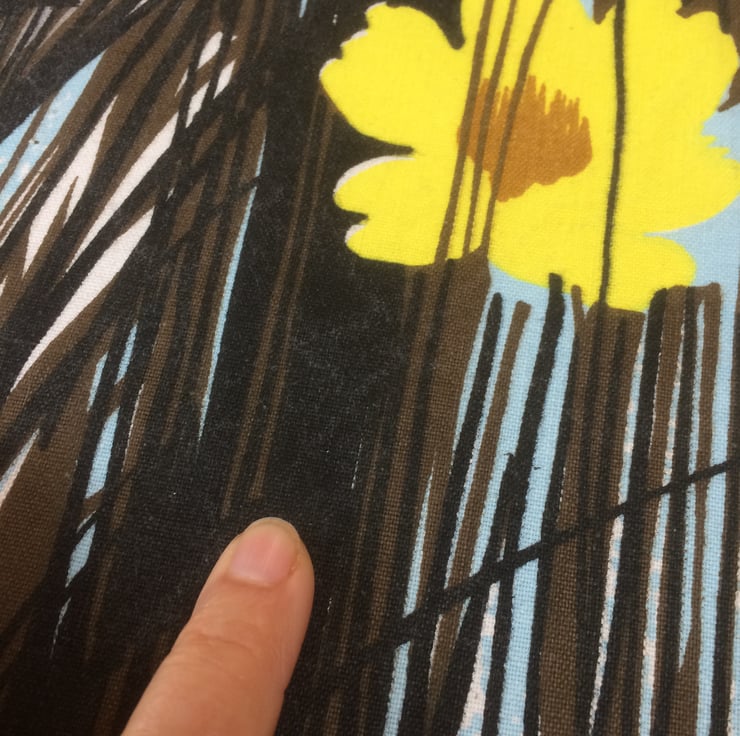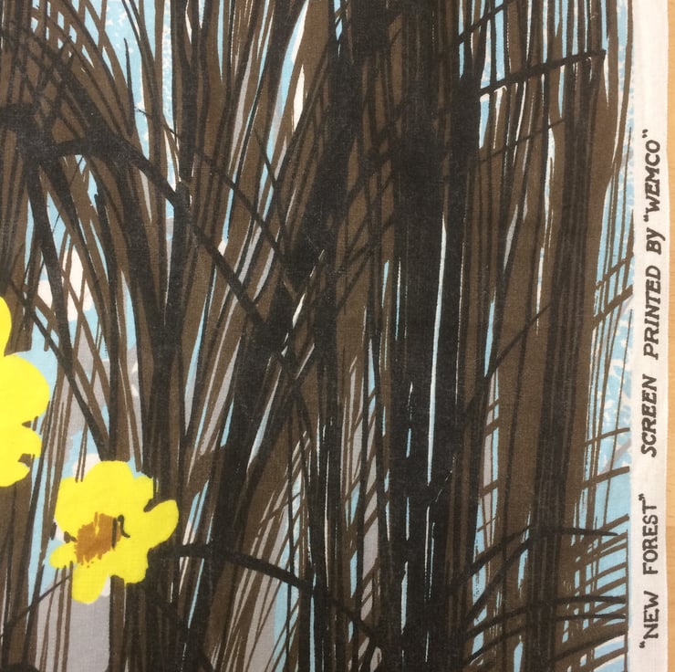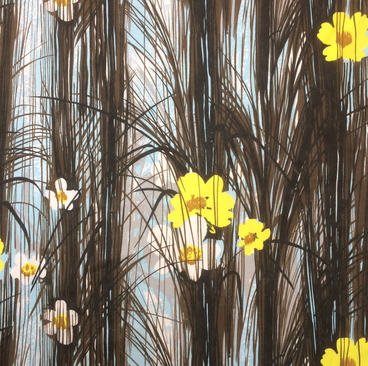 Dramatic Black Reed Grass with Yellow flowers Vintage Fabric Lampshade - the design is NEW FOREST by Wemco