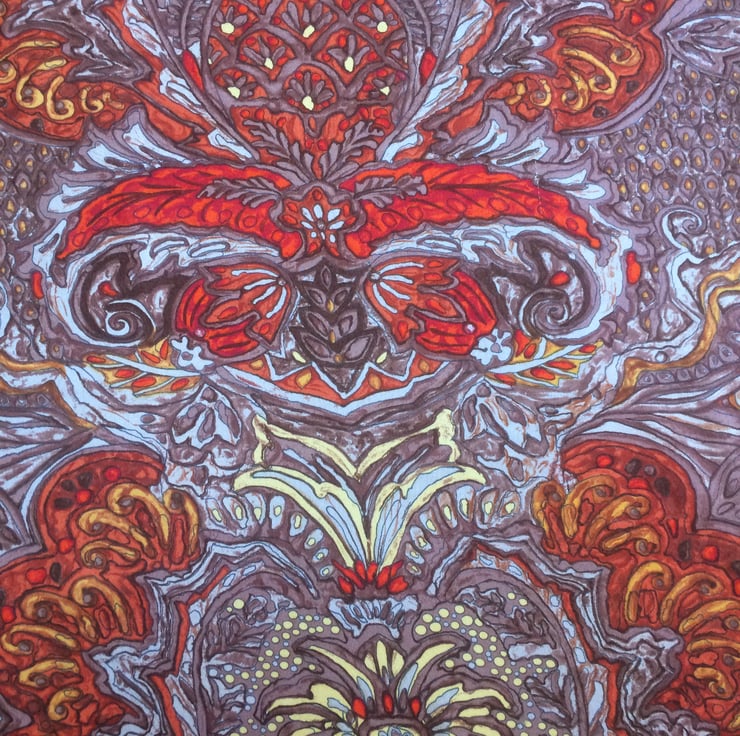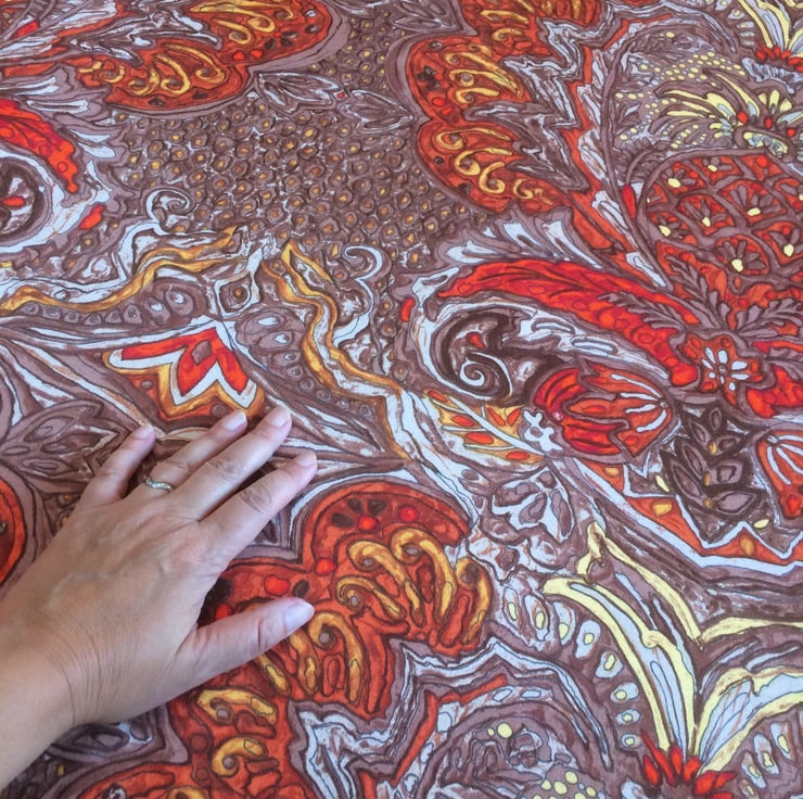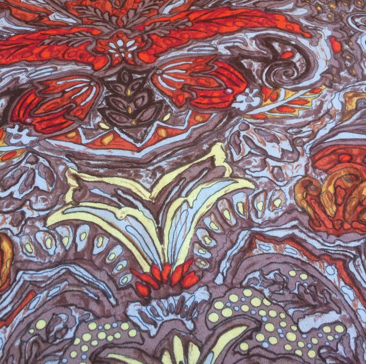 Autumn Fire Tone Ornate 70s Orange and Brown Vintage Fabric Lampshade option.