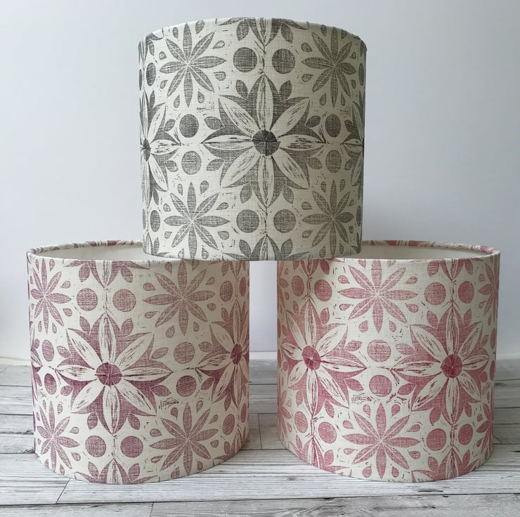 Due to the nature of hand block printed textiles, there may be variations in the colour and pattern of the fabric, which all adds to the unique vintage appearance and charm of the shade. Each design may differ slightly