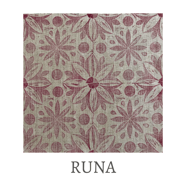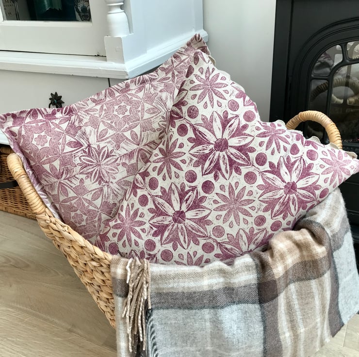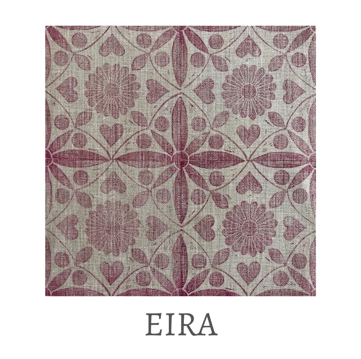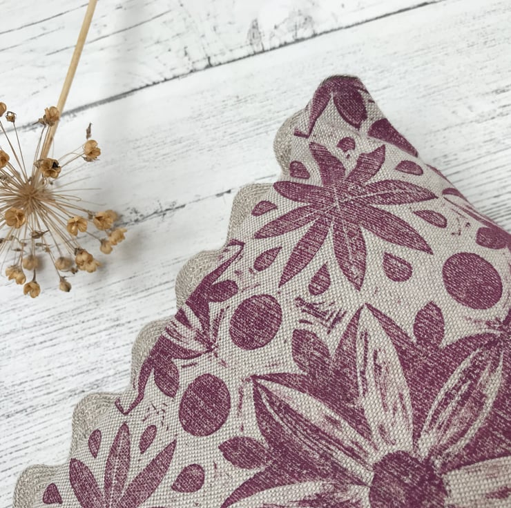 This unique design is block printed by hand, using Eco-Friendly inks on to natural Linen woven in Scotland.