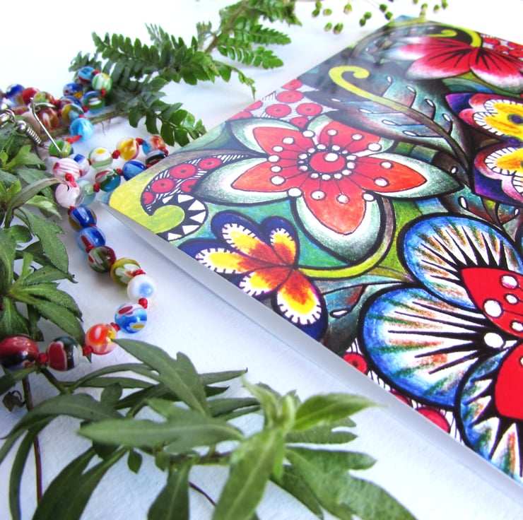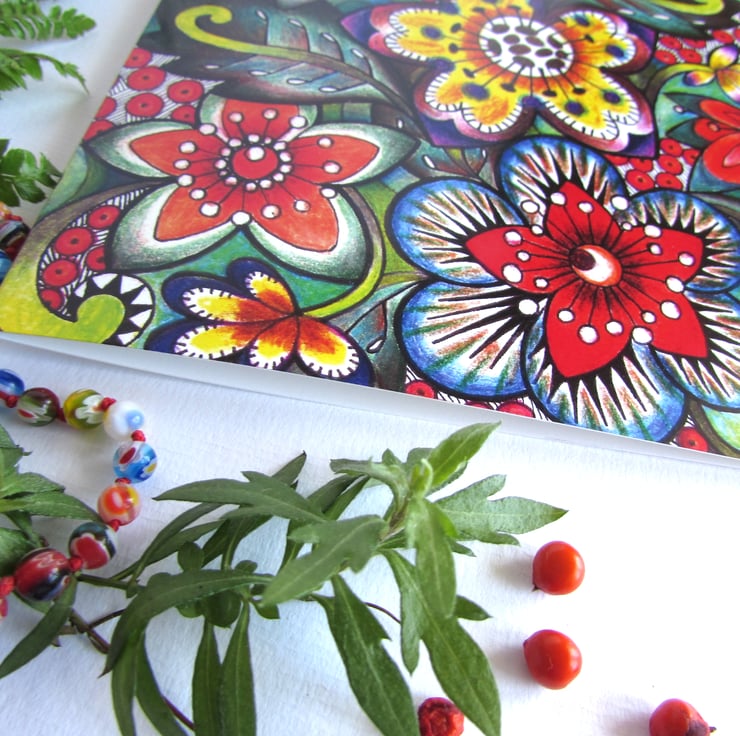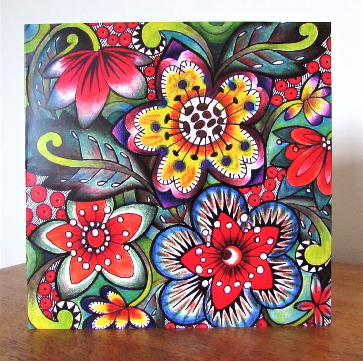 A square card (140mm x 140mm) printed digitally on 330gsm card and hand finished. Supplied with a white envelope and a clear cellophane wrapper. Blank inside for your personal message.