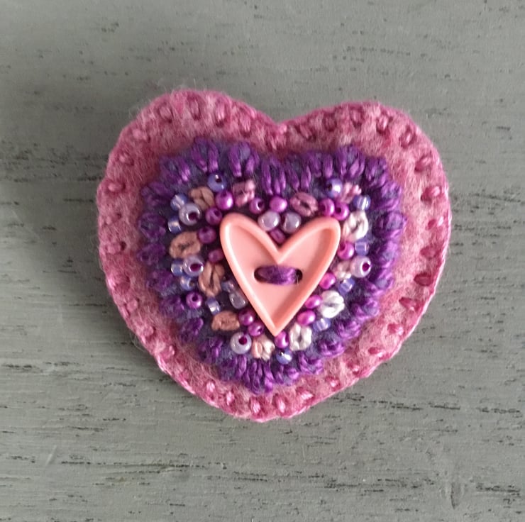 I loved hand embroidering this Hand Embroidered Pink Heart Brooch in my favourite lavender and pink colours.