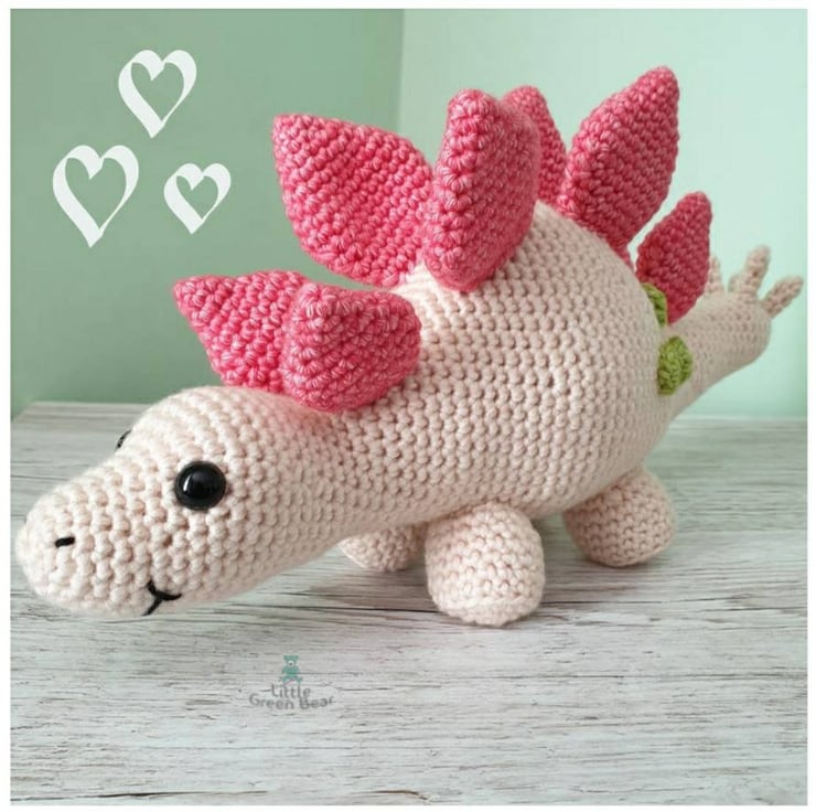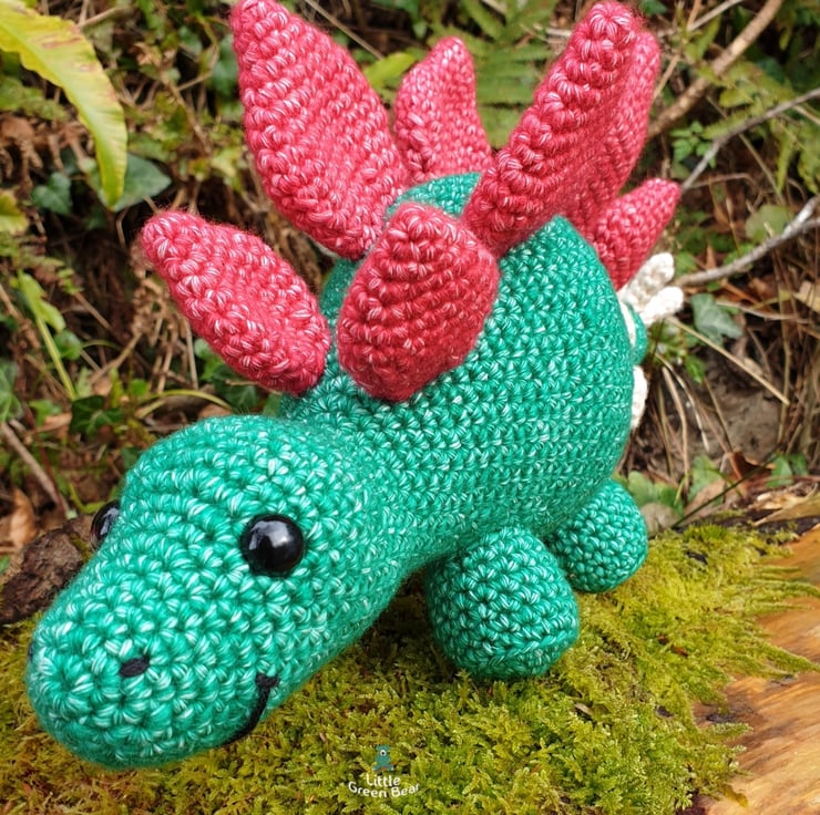 Stan and Sheila, the little Stegosauruses, spend their days hanging out together in the forest looking for tasty bushes and shrubs - trying their best to stay out of trouble because they don’t like running! They are 14 inches long and 7 inches tall (when made with the recommended materials).