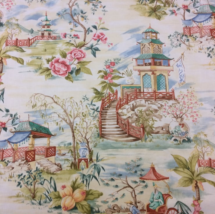 Pretty and Colourful NANKING Chinese Oriental style Vintage Fabric Lampshade
