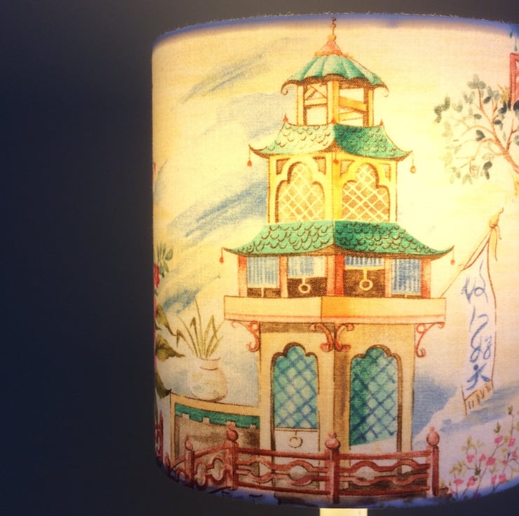 Pretty and Colourful NANKING Chinese Oriental style Vintage Fabric Lampshade