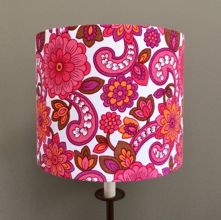 Fab and Funky RETRO Flower Power Pink Orange70s 60s  Vintage Fabric Lampshade