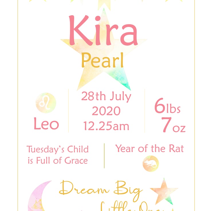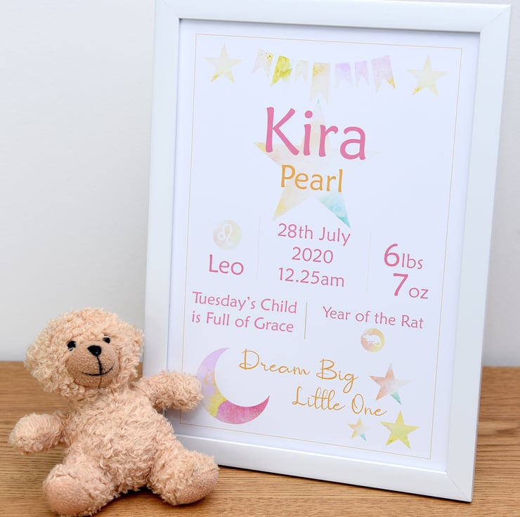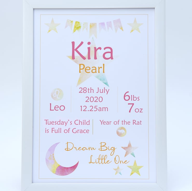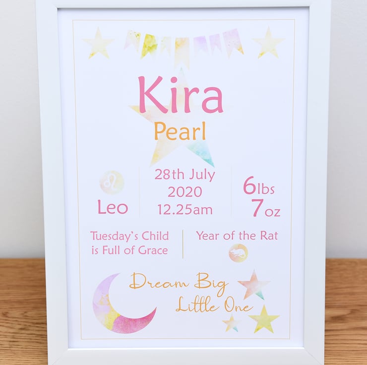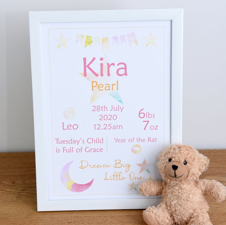 There's nothing more exciting than the birth of a baby! Celebrate this wonderful time with a piece of personalised baby wall art, perfect for baby's nursery and a keepsake for the proud parents. These pieces of personalised wall art can be designed in any colours to match the baby's nursery decor (see other items in my shop for examples but, if you have other colour requirements, please let me know when placing your order).