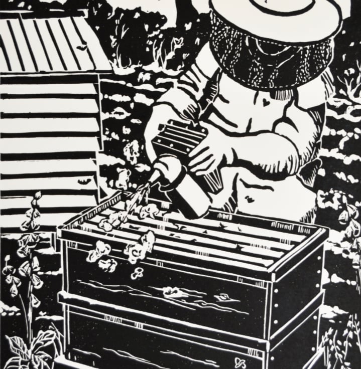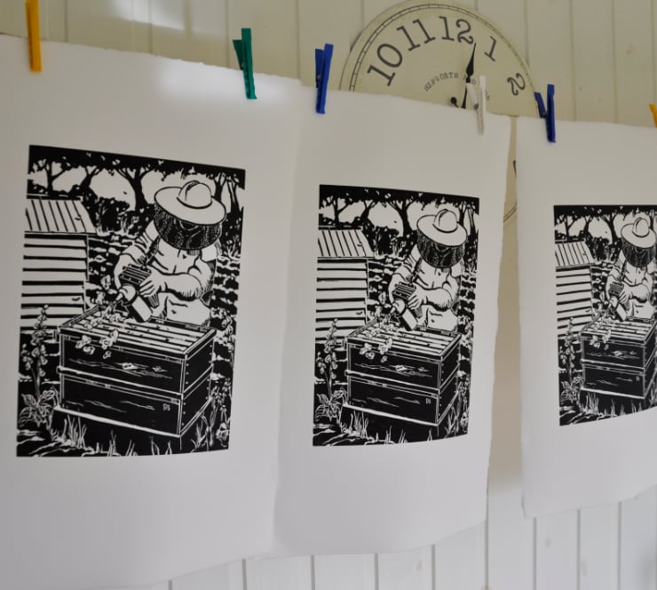 This beautiful print "The Beekeeper" is a large original handmade print limited to just 50 prints.