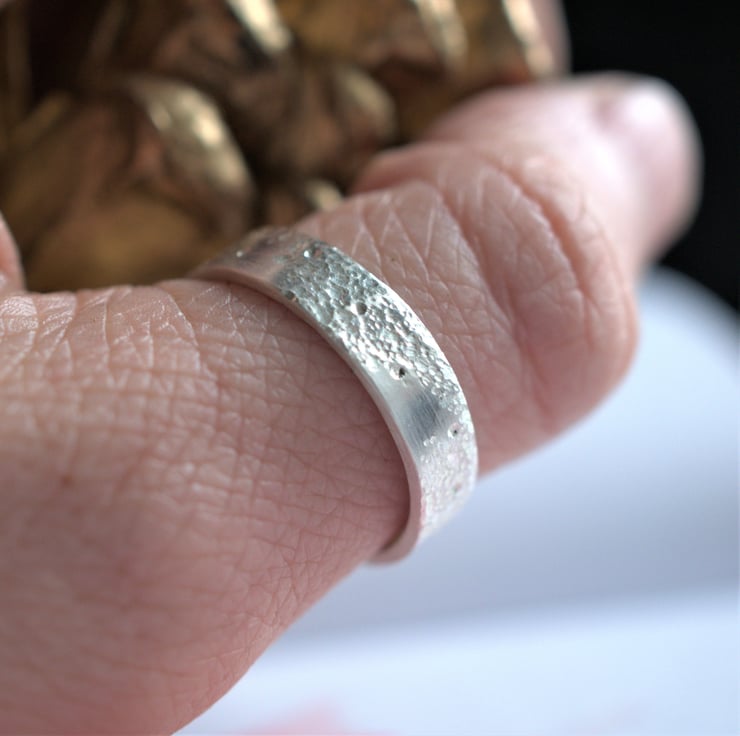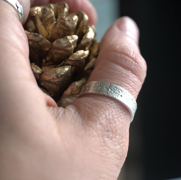 Made from 1.3mm think eco silver sheet, I wanted to create an organic, rough ring - one that looks like it has been on your finger forever.