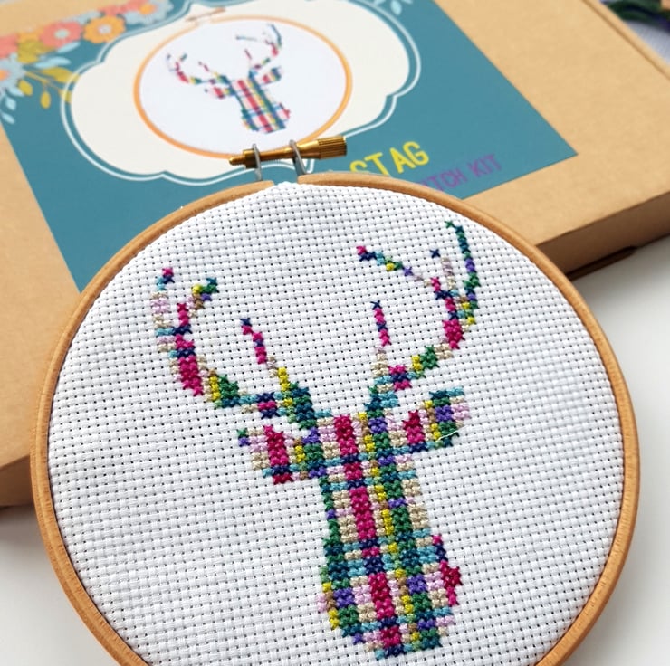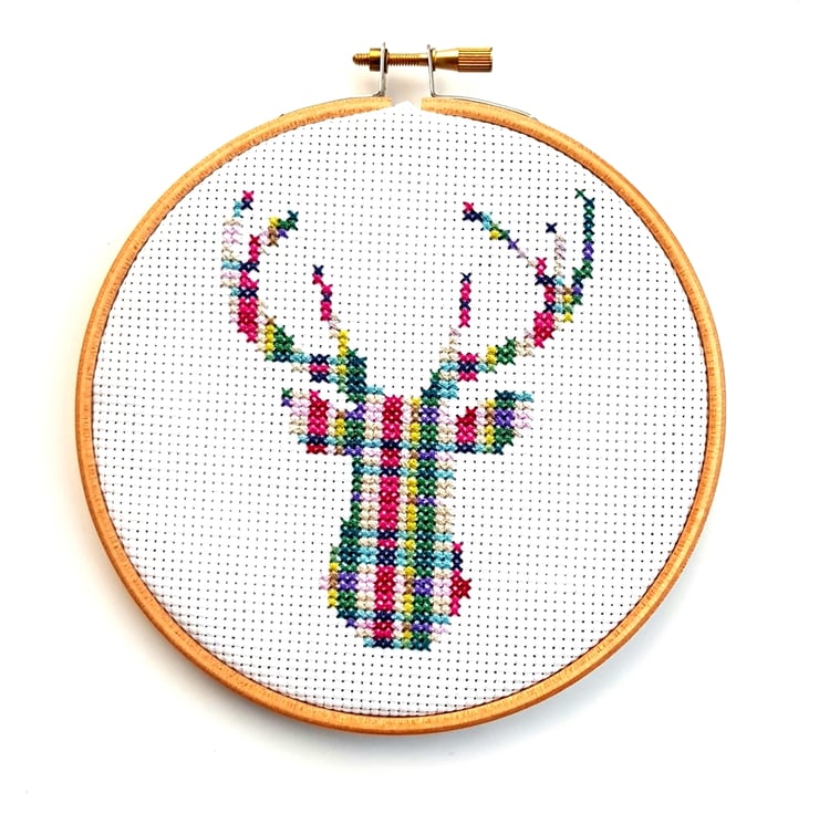 A complete cross stitch kit to sew your own Tartan Stag design - perfect for yourself or as a gift.