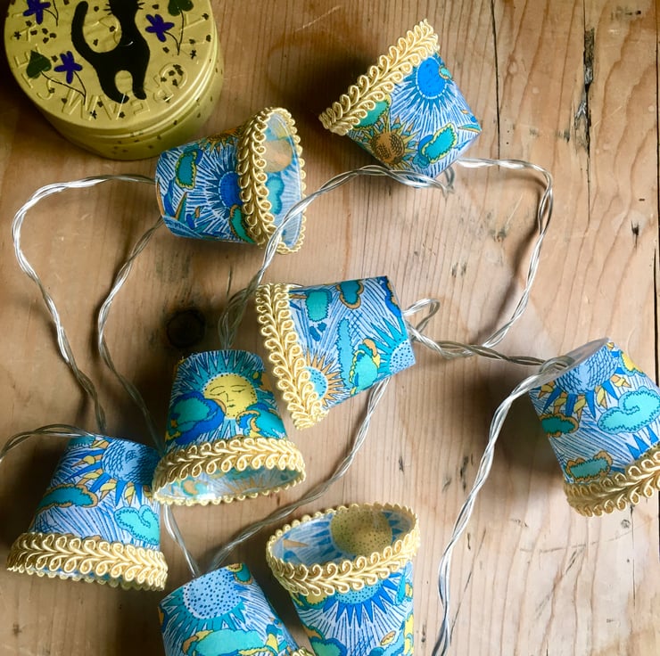 I also do custom lights to order, and I can even use your own special fabric, so please contact me if you would like a particular colour combination to fit with your decor, or have a specific fabric in mind. Just remember that these are mini lampshades, so the prints I use have to be mini too!