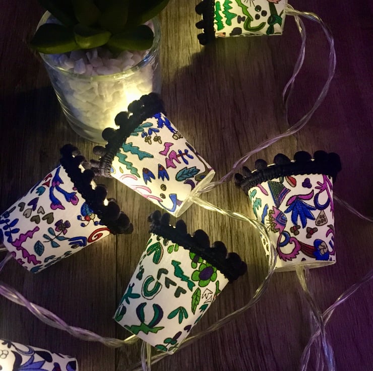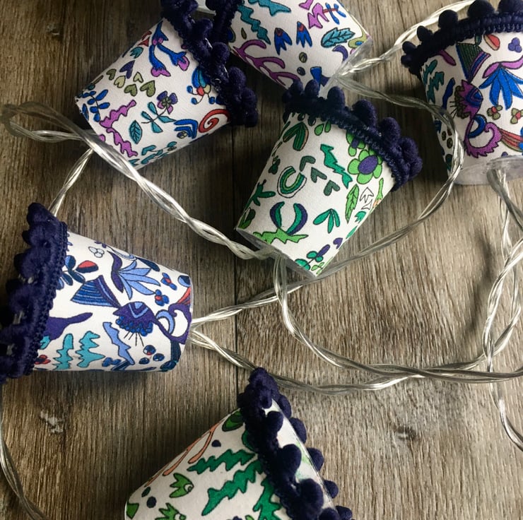 I also do custom lights to order, and I can even use your own special fabric, so please contact me if you would like a particular colour combination to fit with your decor, or have a specific fabric in mind. Just remember that these are mini lampshades, so the prints I use have to be mini too!
