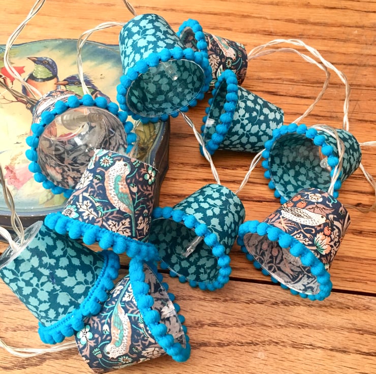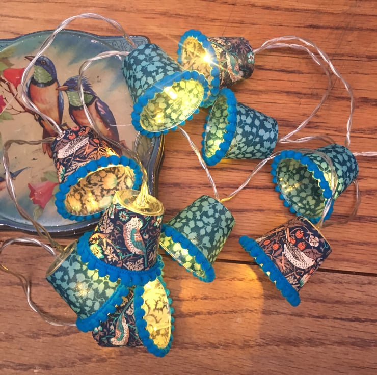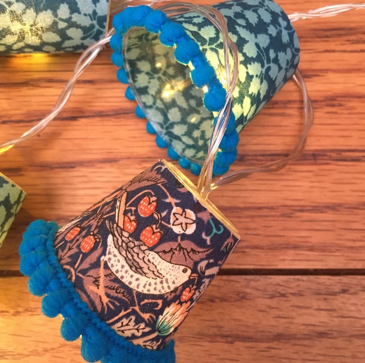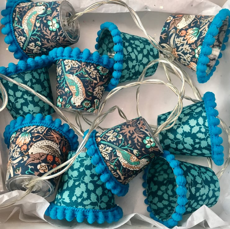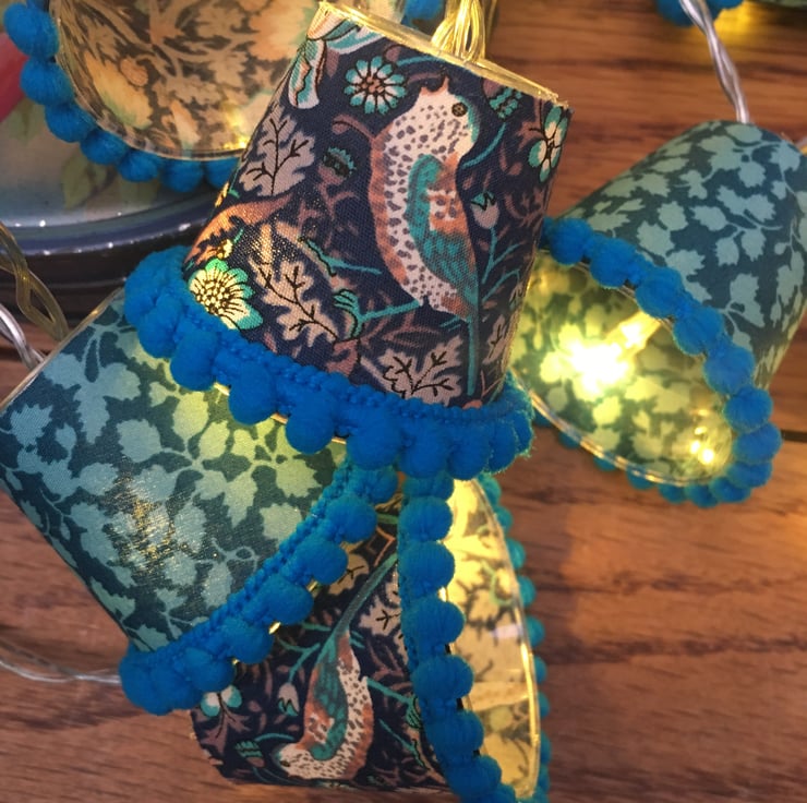 I also do custom lights to order, and I can even use your own special fabric, so please contact me if you would like a particular colour combination to fit with your decor, or have a specific fabric in mind. Just remember that these are mini lampshades, so the prints I use have to be mini too!